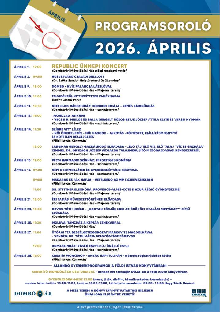 Színes tavaszi programokkal vár Dombóvár áprilisban