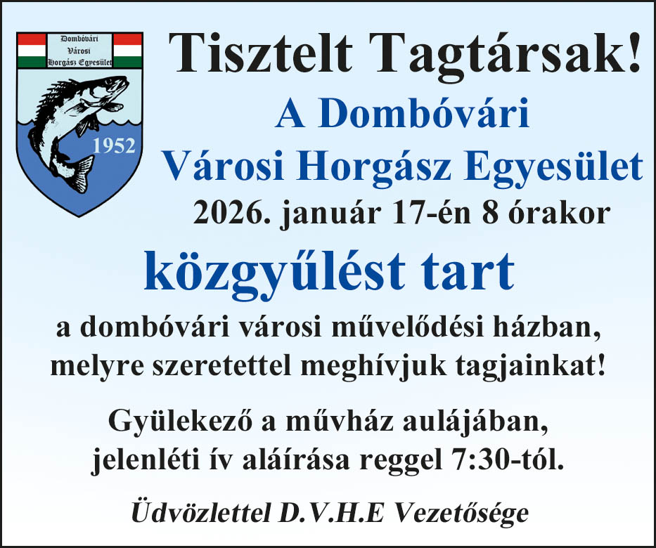 Közgyűlés és horgászbál lesz január 17-én Dombóváron