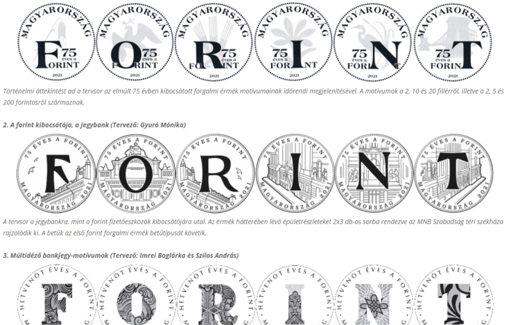 Az érmék lehetséges megjelenésére öt változatot javasol a jegybank. A közönség választhat az ikonikus érmemotívumok, esetleg a bankjegy-elemeket megidéző változat, vagy a modern szemléletű tervsor, esetleg a kibocsátó, illetve a pénzfunkciók felőli megközelítés közül - ismertették.